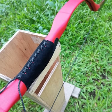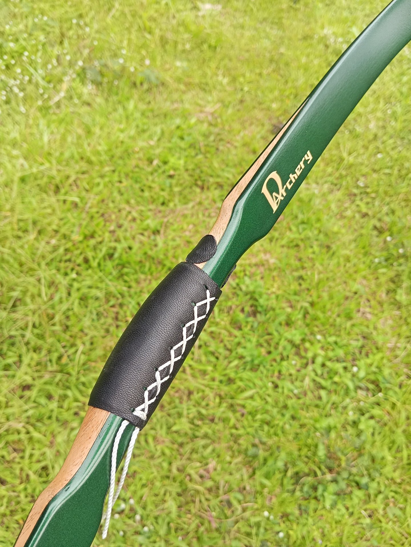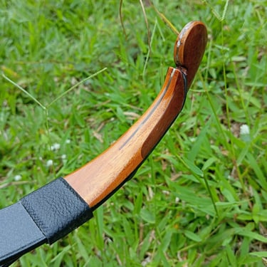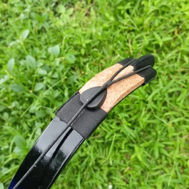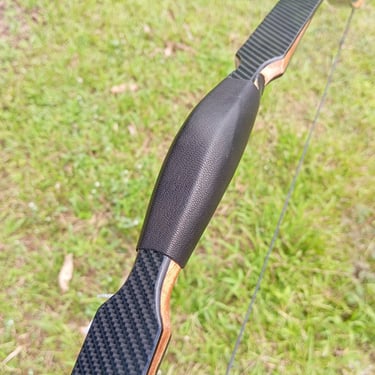 Material: Epoxy fiberglass, Kayu (Acacia/hardwood pada handle dan siyah), limb dilapisi kulit domba