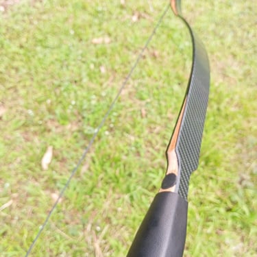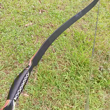 Material: Epoxy fiberglass (lapisan utama), Kayu (Acacia/hardwood pada handle & siyah) dan lapisan motif carbon pada limb.